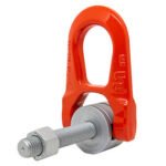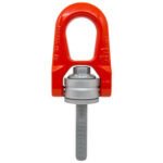 The DSR lifting ring is a double swivel ring. It is composed of a GRADUP lifting ring designed for rotations under load. Its double swivel ensures perfect alignment with the sling. The lifting ring can swivel 180° but has a rotating range of 360°. It can be used for any lifting configuration (straigt lift, with angle, tilting, rotating).