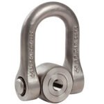 The female stainless universal lifting ring SS.FE.DSS is a double swivel ring. It is designed for rotations under load. Its double swivel ensures perfect alignment with the sling. Just like all of CODIPRO’s stainless-steel lifting rings, the SS.DSS provides perfect corrosion resistance. This ensures optimal longevity of the lifting ring and allows it to be used in humid, chemical, marine environments, etc. The lifting ring can swivel 180° but has a rotating range of 360°. It can be used for any lifting configuration (straigt lift, with angle, tilting, rotating).