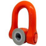 The FE.DSS female lifting ring is a double swivel ring. It is composed of a GRADUP lifting ring designed for rotations under load. Its double swivel ensures perfect alignment with the sling. The lifting ring can swivel 180° but has a rotating range of 360°. It can be used for any lifting configuration (straigt lift, with angle, tilting, rotating).