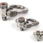 The SS.QLR (Quick Lift Ring) or SS.QL.DSR is a double swivel ring in stainless steel that allows particularly fast mounting. At the push of a button, it can be fixed in the threaded hole with a simple click. Its double swivel ensures a perfect alignment with the sling. The QL.DSR saves up to 80 % of time compared to screwing in a conventional lifting ring. The system works purely mechanically and thus requires no complex maintenance.
